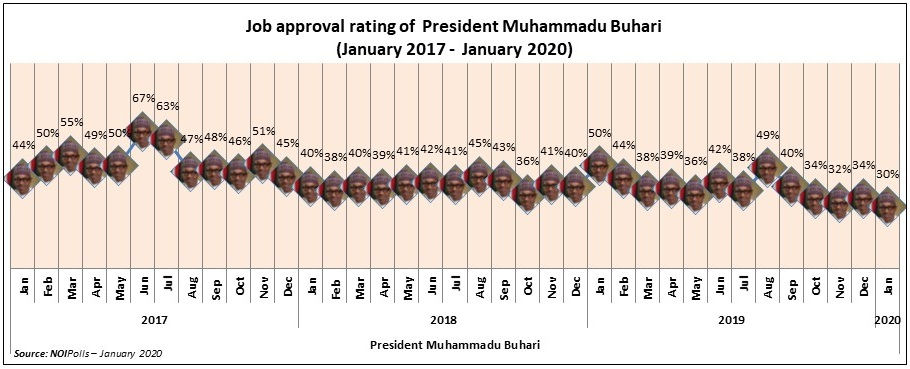 Presidential Job Approval for January 2020NOIPollsMar 23, 20201 min readUpdated: Nov 25, 2024Approval=30% | Disapproval=54 | Undecided=16% | Change Direction=-4 Overview Approval Sector Yearly Approval Rating